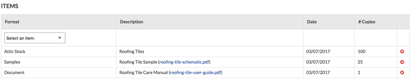 注: システムでは、既存の項目を編集することはできません。項目を修正する必要がある場合は、赤い「x」をクリックして削除します。次に、項目を再度追加します。